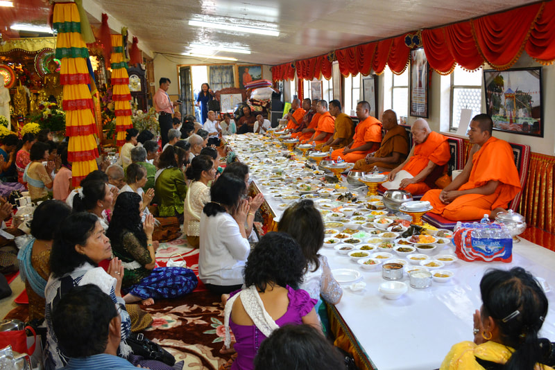 Here are some photos of the various Cambodian temples in Atlanta and Georgia -- the largest is Wat Khmer in Lithonia, with its impressive architecture of the gate / arch. Trairatanaram Temple in College Park is currently constructing their Dhamma hall (main temple building), and Wat Dhammajotikaram temple in Stockbridge is also planning construction and expansion. Photos include alms offering where monks go on alms round to collect food and donations from the laity, as well as Khmer New Year Festivals, Buddhist holidays, and other Asian cultural traditions.